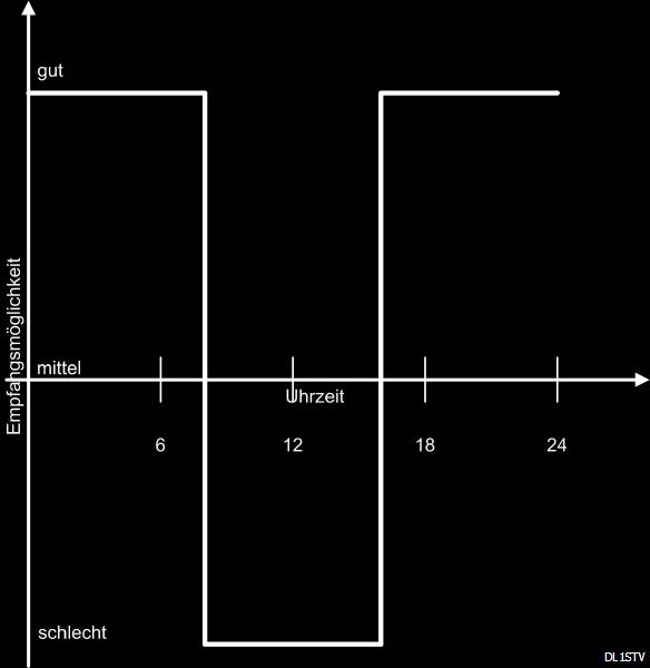 Emfpangsmöglichkeiten von Mittelwellen variieren mit der Tageszeit und Jahreszeit.